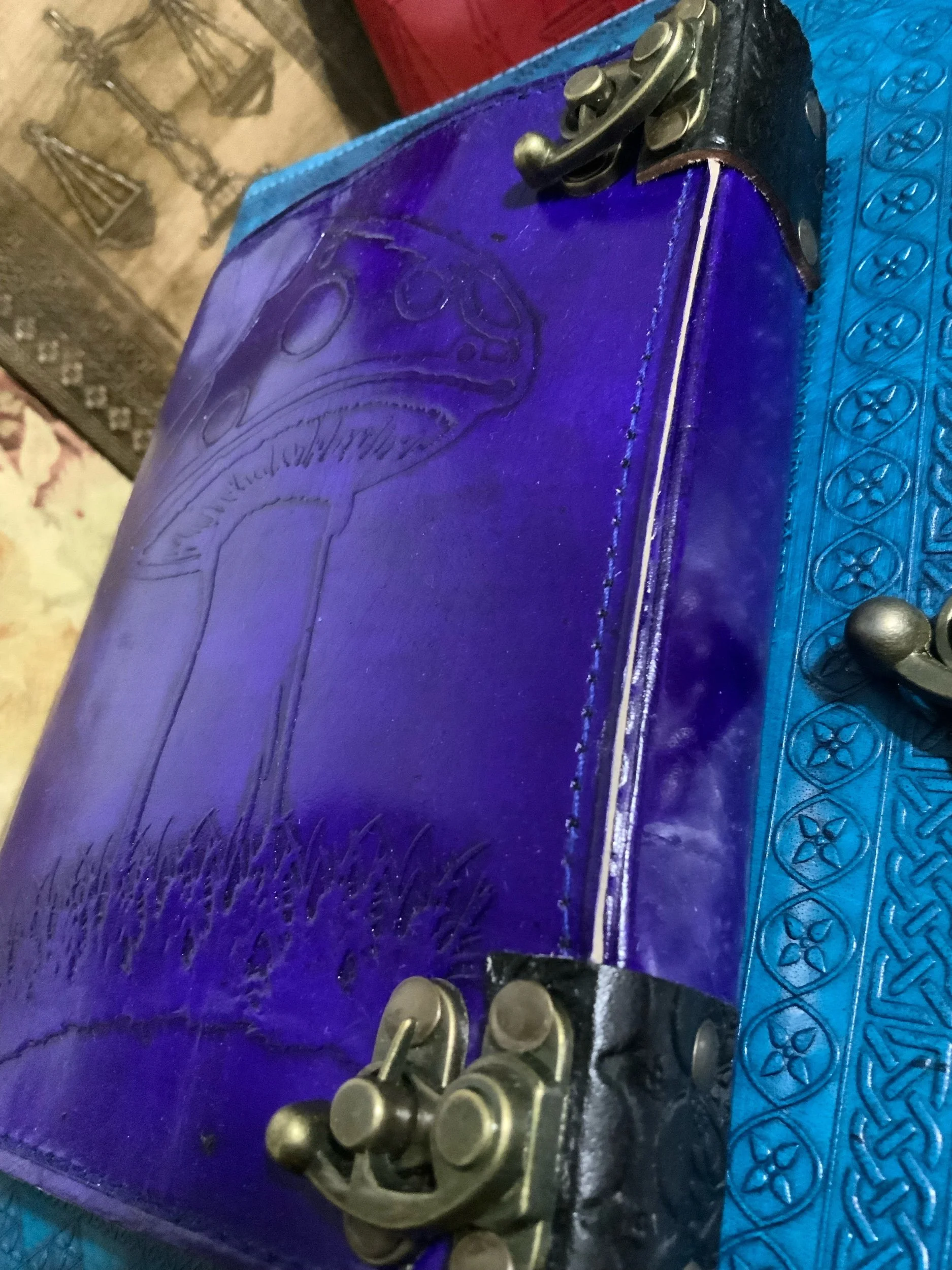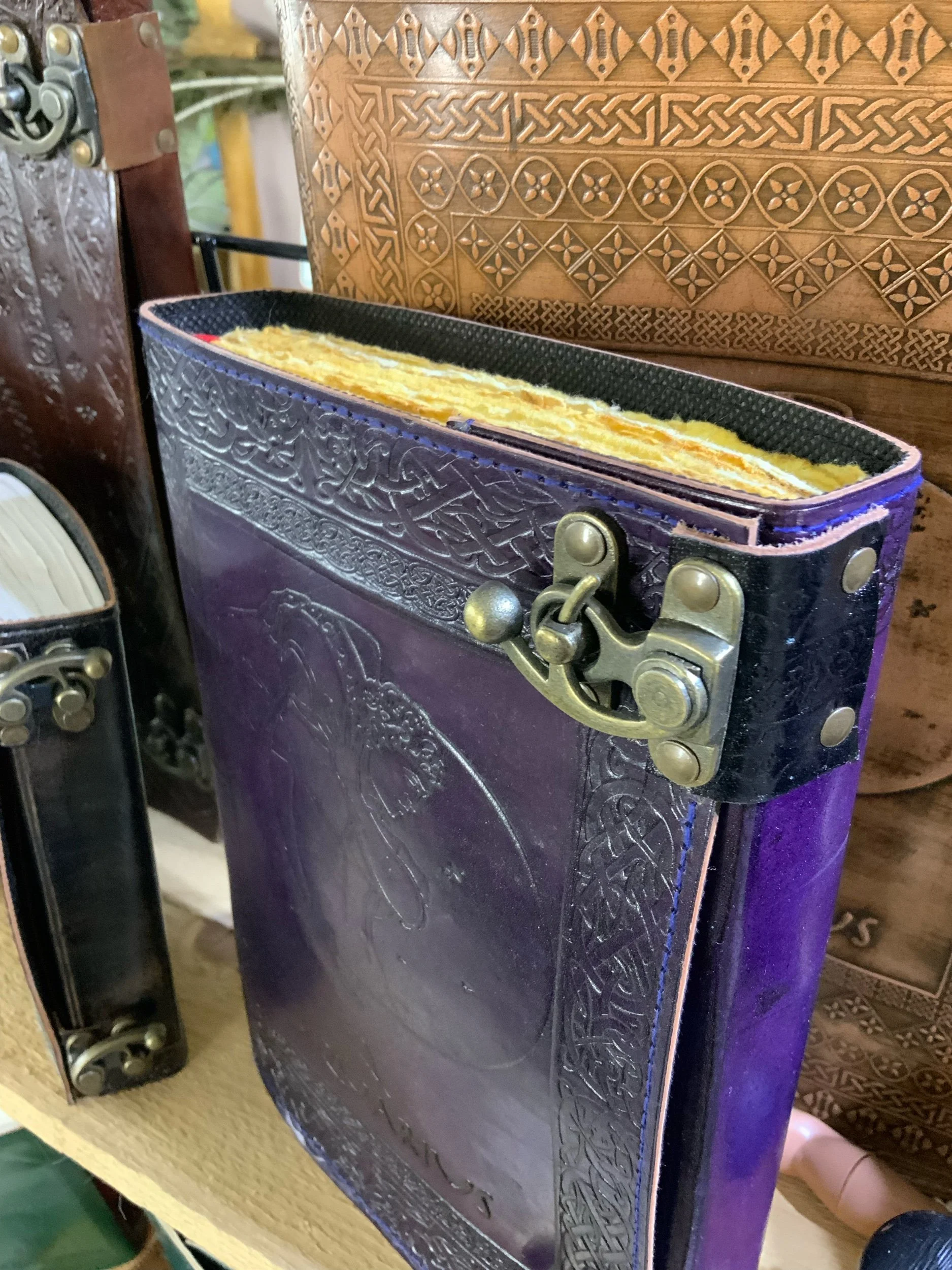 Leather Journals Categories: All Crystals By Shape Towers Spheres Carved Pieces Skulls Penises Hearts, Moons, & Stars Palm Stones Eggs Pyramids Tumbled Stones Double Terminated Points Dishes/Bowls Raw Stones Large Pieces Raw Crystals by Properties Digestion Synergy 12 Male Vitality Fountain of Youth Allergies Arthritis Blood Heart Confidence Magic Money & Prosperity Mental Clarity & Memory Pain Protection Stress & Anxiety General Health Angelic Communication Chakras All Chakras Crown Third Eye Throat Heart Solar Plexus/Navel Sacral Root Crafting Chips Drilled Beads Wire Wrapping Cabochons DIY Kits Jars Leather Journals 5x7 7x10 10x13 Other Jewelry Sterling Silver Necklaces Pendants Headpieces Rings 10.5+ 10 9.5 9 8.5 8 7.5 7 6.5 6 5.5 5 4.5 & Smaller Bracelets Earrings Children Unisex Large Apothecary Candles Incense Sage & Palo Santo Herbs & Spices Potions & Spell Jars Soap Salves Oils Gift Sets Gift Sets Zodiac Sets Tarot Cards Decor and More Large Pieces Dreamcatchers Parasol & More... Clearance More All / Leather Journals All Crystals By Shape Crystals by Properties Chakras Crafting Leather Journals 5x7 7x10 10x13 Other Jewelry Apothecary Gift Sets Tarot Cards Decor and More Clearance More Quick View Lenora $30.00 Quick View Tan leather Aquarius journal 5 x 7 $30.00 Quick View Green leather Aquarius journal $30.00 Quick View Purple leather 7 x 10 Aquarius journal tea paper $53.00 Quick View Tan Leather 5 x 7 Aquarius Journal $30.00 Quick View Leather Aquarius 10 x 13 journal tea pages $75.00 Quick View 14 x 21 huge leather red grimoire Arcana $195.00 Quick View Purple grimoire, Arcana 5 x 7 leather journal $33.00 Quick View Grimoire Arcana 5 x 7 turquoise leather journal $33.00 Quick View 5 x 7 black grimoire Arcana leather journal $33.00 Quick View 5 x 7 tan leather grimoire Arcana journal $33.00 Quick View Red leather 10 x 13 grimoire Arcana tea page journal $80.00 Quick View 10 x 13 black leather Grimoire Arcana tea paper journal $80.00 Quick View 10 x 13 Grimoire Arcana tan leather tea pages $80.00 Quick View 7 x 10 tan leather grimoire Arcana tea pages $50.00 Quick View 7 x 10 red leather grimoire Arcana thick 200 T pages $95.00 Quick View 7 x 10 Brown leather Grimoire ARCANA 200 T pages $95.00 Quick View Brown leather 4 x 6 sunflower Journal $25.00 Quick View Purple leather 4 x 6 sunflower journal $25.00 Quick View Turquoise 4 x 6 leather sunflower journal $25.00 Quick View Brown leather hocus-pocus journal 5 x 7 tea paper $35.00 Quick View 5 x 7 Hocus Pocus leather journal $35.00 Sold out Quick View Hocus Pocus tan 5 x 7 journal $35.00 Quick View Hocus Pocus leather journal 5 x 7 tea paper $35.00 Quick View Tan 10 x 13 leather tree of life journal tea paper $81.00 Quick View Turquoise teal 10 x 13 tea page book of shadows $85.00 Quick View 10 x 13 tan leather book of shadows tea paper $85.00 Quick View 10 x 13 tan, leather, sunflower journal tea paper $81.00 Quick View Brown leather sunflower 10 x 7 tea paper journal $50.00 Quick View 10 x 7 red leather sunflower journal tea paper $50.00 Quick View Red leather sunflower journal 10 x 13 T paper $160.00 Quick View Brown 10 x 13 leather triple moon goddess, moonstone, tea paper journal $85.00 Quick View Turquoise triple moon goddess, 10 x 13 tea paper $85.00 Quick View Hocus Pocus 300 T stained pages 10 x 13 leather BOOK $190.00 Quick View Leo lion 7 x 10 tan leather journal $51.00 Quick View Red triple moon goddess 10 x 13 leather journal tea paper $81.11 Quick View Red 7 x 10 leather tree of life journal 200 tea pages $87.11 Quick View Red 7 x 10 fire spider Journal t paper $50.00 Quick View Leather 7 x 10 thick unicorn journal 200 t stained pages $92.11 Quick View Purple leather Aquarius, journal 5 x 7 $30.00 Quick View 5 x 7 luck of the Irish, four leaf clover, brown leather journal $30.00 Quick View 5 x 7 tan leather four leaf clover journal $30.00 Quick View Purple 5 x 7 leather butterfly journal $30.00 Quick View 5x7 pink sunflower Journal $30.00 Quick View 5 x 7 red leather butterfly journal $30.00 Quick View 5 x 7 turquoise leather butterfly journal $30.00 Quick View 5 x 7 brown leather butterfly journal $30.00 Quick View 5 x 7 tan butterfly journal $30.00 Quick View Teal tree of life journal 14 x 21 t stained paper $187.11 Quick View 14 x 21 red tree of life family heirloom Journal $187.11 Quick View Huge leather turquoise tree of life, family, heirloom book 21 x 14 200 tea stained pages $285.11 Quick View Huge red 21 x 14 tree of life 200 T stain page grimoire check it out $275.00 Quick View Huge 21 x 14 10 tree of LIFE family, heirloom Journal 200 tea stained pages $275.00 Quick View Brown 21 x 14 tree of life family heirloom journal $187.11 Quick View Triple moon, goddess 7 x 10 teal leather journal tea stained paper $55.00 Quick View Red tree of life, leather journal 7 x 10 tea stained paper $53.00 Quick View Hocus Pocus book 7 x 10 tea stain paper $56.00 Quick View 7 x 10 butterfly Journal tea stained paper $53.00 Quick View Brown leather sunflower journal 7 x 10 $50.00 Sold out Quick View Tan 7 x 10 leather sunflower journal $50.00 Quick View Black leather 7 x 10 Dreamcatcher wolf journal $50.00 Sold out Quick View Red leather triple moon goddess 7 x 10 journal tea stained paper $55.00 Quick View Black leather 7 x 10 pentagram journal tea stain paper $55.00 Quick View Teal 7 x 10 book of shadows 200 T pages $95.00 Quick View Red leather book of shadows 7 x 10 200 T pages $95.00 Quick View 7 x 10 red leather book of shadows $53.00 Quick View Yellow 7 x 10 leather book of shadows $53.00 Quick View 10 x 13 red leather book of shadows thick 200 T pages $160.00 Quick View 5 x 7 fuchsia pink butterfly journal $30.00 Quick View Brown 5 x 7 triple moon goddess journal $32.00 Quick View Teal triple moon goddess 5 x 7 journal moonstone $32.00 Quick View Purple leather triple moon goddess 5 x 7 journal $32.00 Quick View Tan 5 x 7 triple Moon, goddess journal $32.00 Quick View Red 5 x 7 triple Moon goddess moonstone journal $